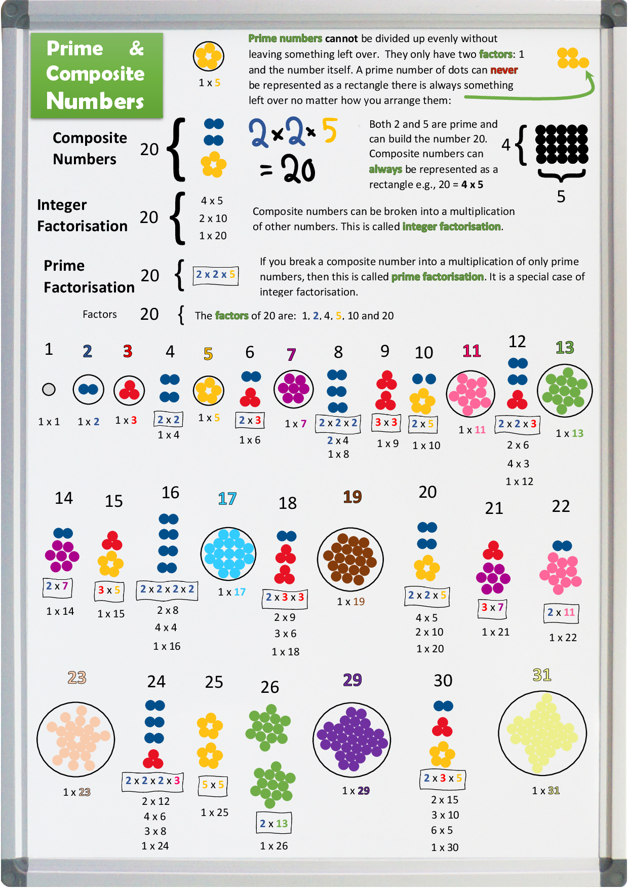 This infographic shows all of these concepts for the integers from 1 to 31.